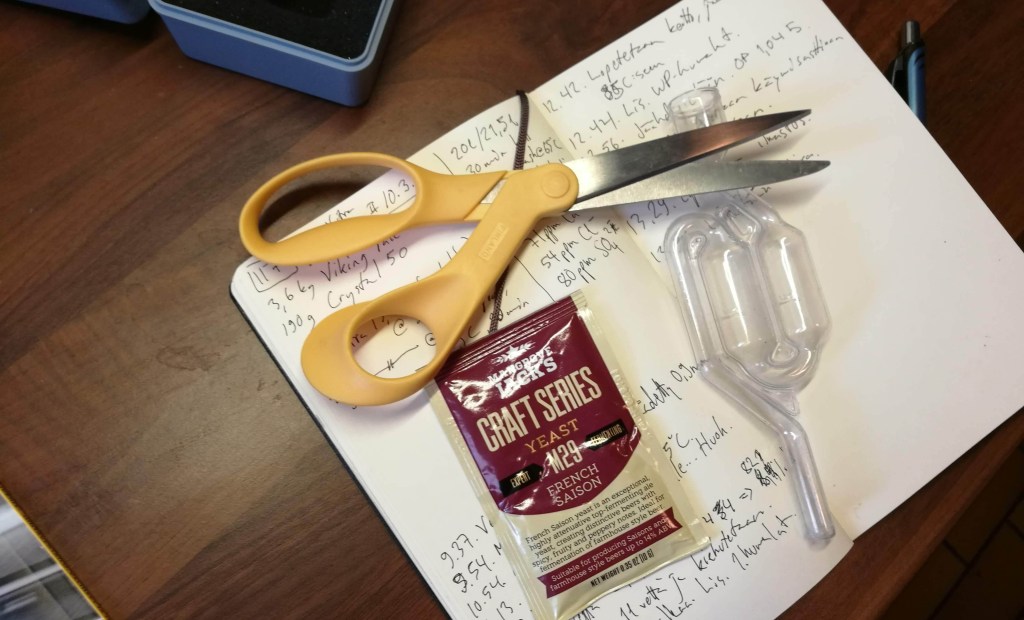 Käymisen hoiti Mangrove Jack’sin M29 French Saison -hiiva, jota olen käyttänyt vain pari kertaa hapanoluiden panemiseen. Hirveän hyvää käsitystä sen tuottamista mauista minulle ei siis ole vielä syntynyt. Internetin perusteella vaikuttaa kuitenkin siltä, että kyseessä saattaisi ehkä olla sama kanta kuin Wyeastin 3711 French Saison, joka on puolestaan tullut erittäin tutuksi ja havaittu hyväksi.