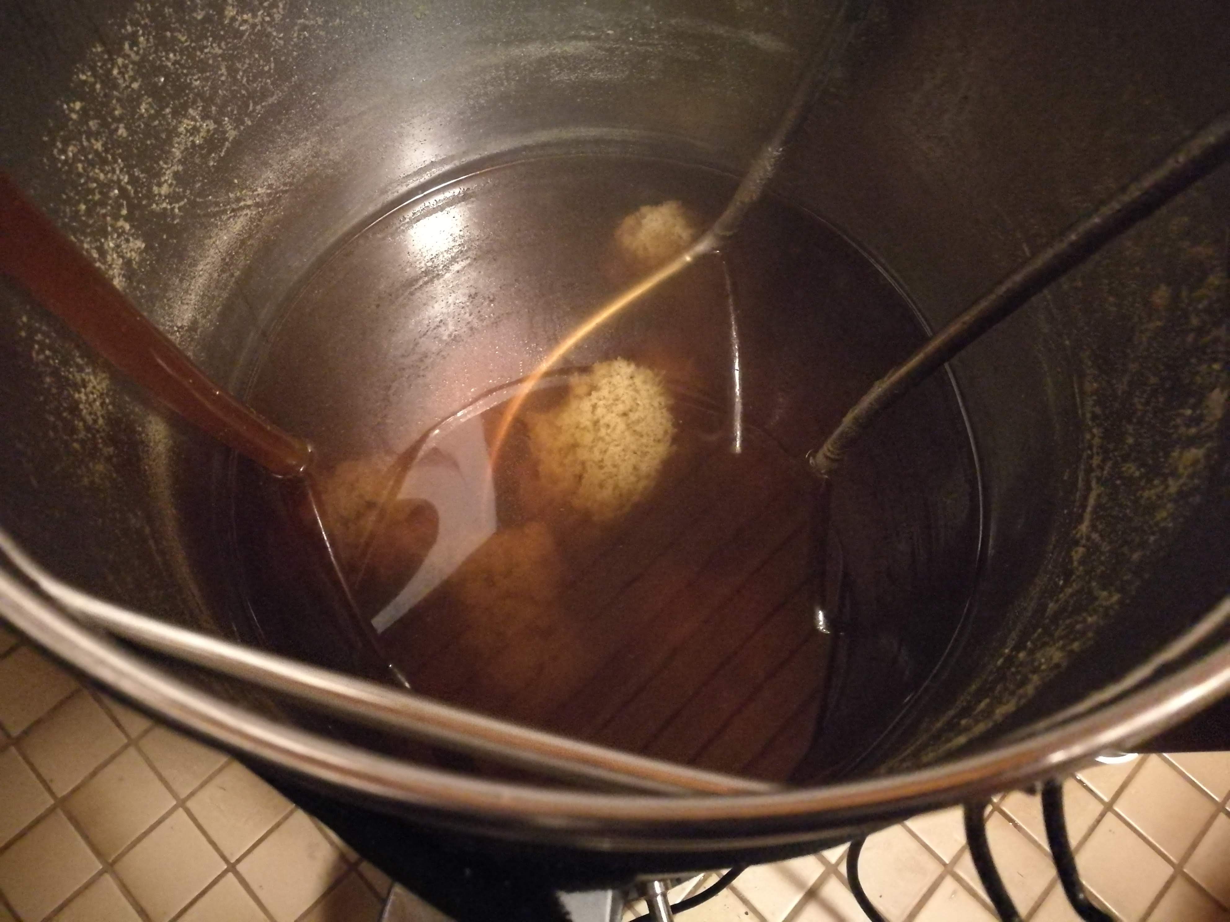 Jäähdytyksen aikana emme enää sekoittaneet vierrettä. Ilmeisesti tästä syystä vierteen seassa oleva kiinteä sakka-aines kerääntyi aluksi jänniksi lautoiksi lähelle vierteen pintaa ja lopulta vajosi pohjalle. Vierre näyttikin päältä tavallista kirkkaammalta. Saapi nähdä, vaikuttaako tämä jotenkin lopulliseen olueen.