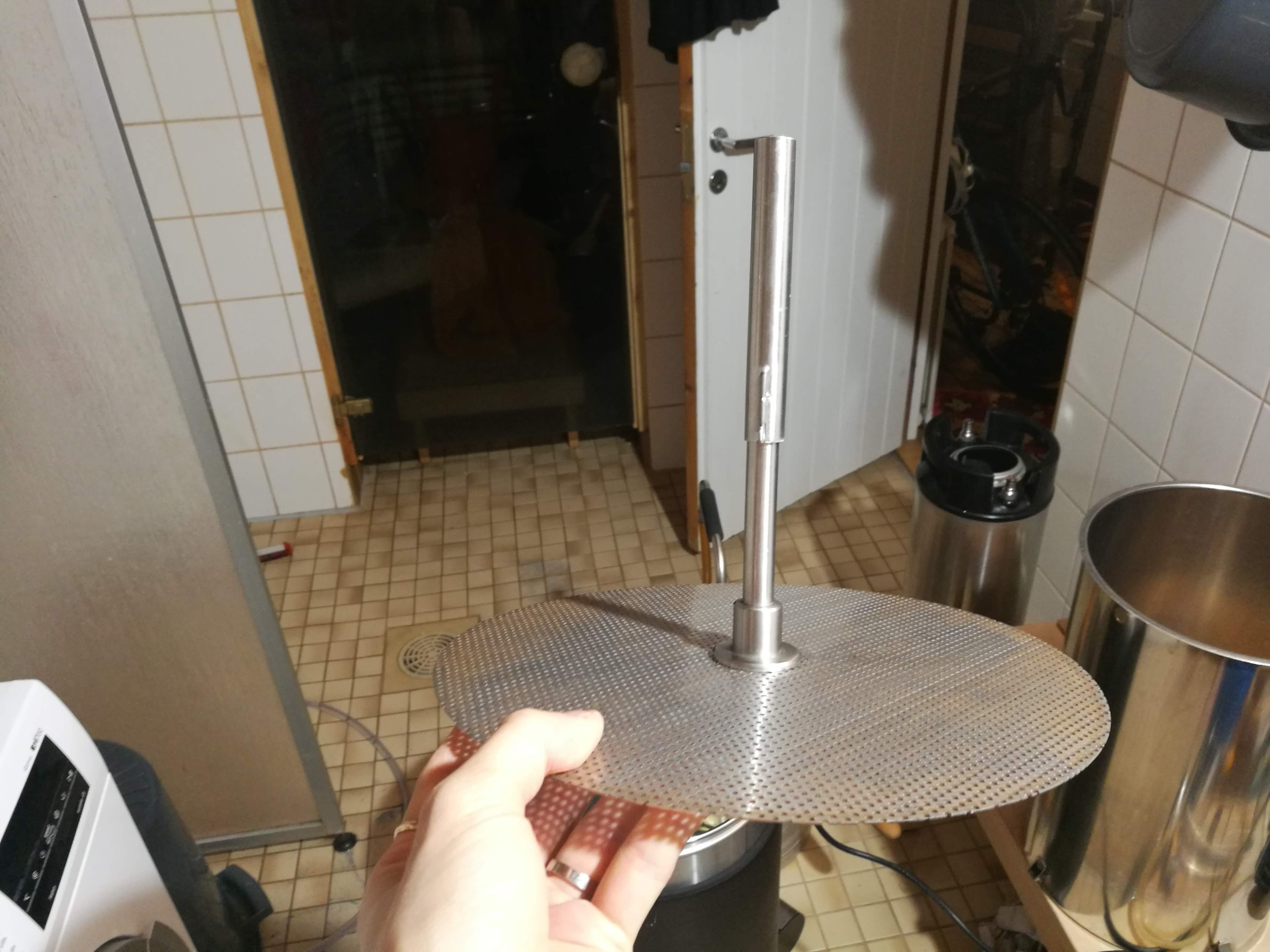 Koska tein tällä kertaa vähän normaalia pienempää satsia, käytin Grainfatherin micro pipework -lisäosaa, joka on siis mallaspiipun pohjalevyyn vaihdettava, normaalia lyhyempi ylivuotoputki. Tällä onnistuu näppärämmin alle 4-kiloiset mäskit, joissa pitäisi olla muuten aika paljon nestettä.